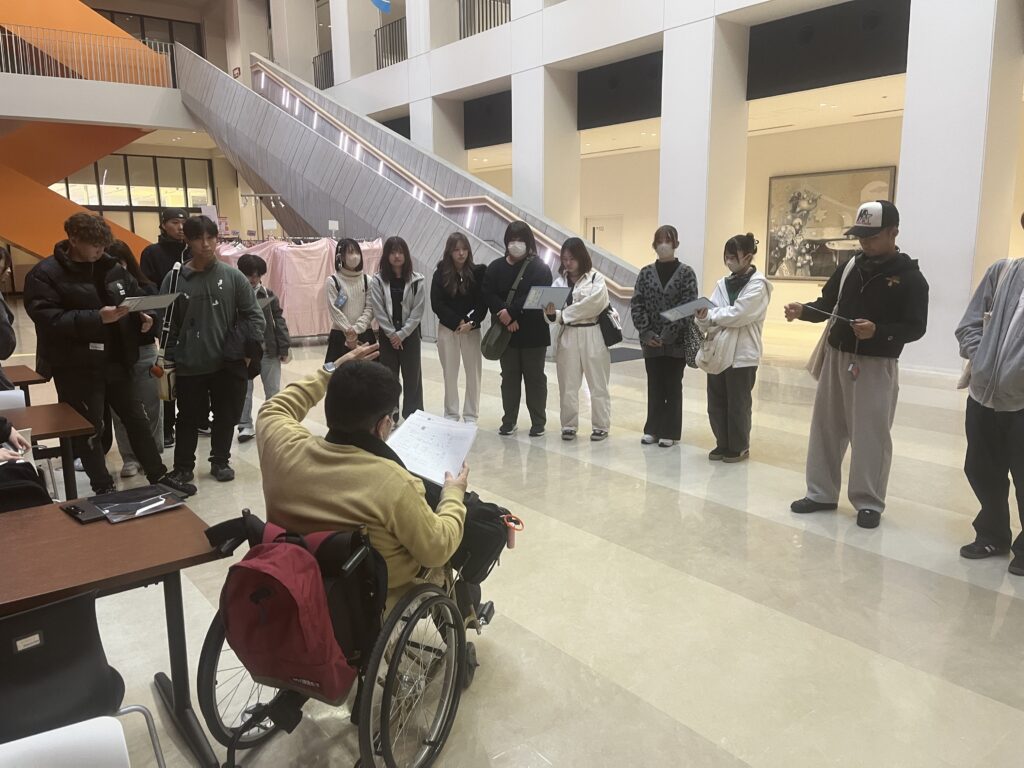 11月15日(土)に基礎ゼミⅡの金井ゼミ・藤田ゼミ・小坂ゼミ、3ゼミ合同でフィールドワークとして、ポートアイランドキャンパスの教室やキャンパスのアクセシビリティチェックを行いました。