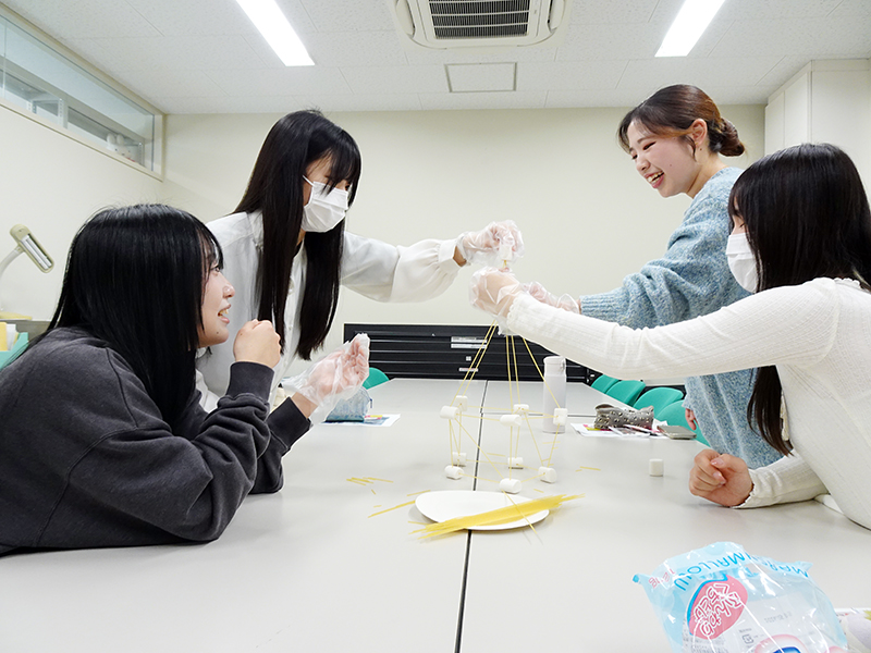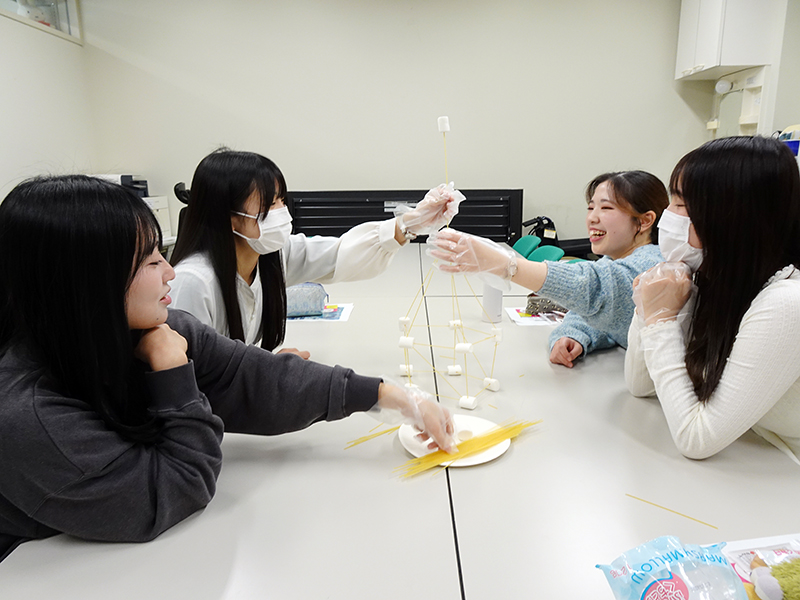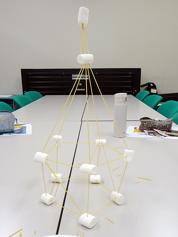 先日のミーティングでは、自分たちで片麻痺の不便さを体験しつつ楽しめるものとして、マシュマロチャレンジをしました。すごく楽しんでチャレンジをしてくれましたので、らくスポのアイデアを考えるヒントになればと思っています。