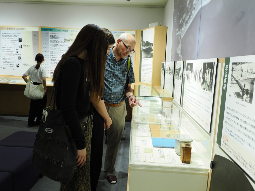 島に到着後は、歴史館で映像や資料を通して、療養所での暮らしや当時の社会状況について学びました。また、実際に入所者が上陸した港や監房跡を見学し、「なぜこのような施設が必要とされたのか」「人はどのように扱われてきたのか」を、現地で考える時間となりました。