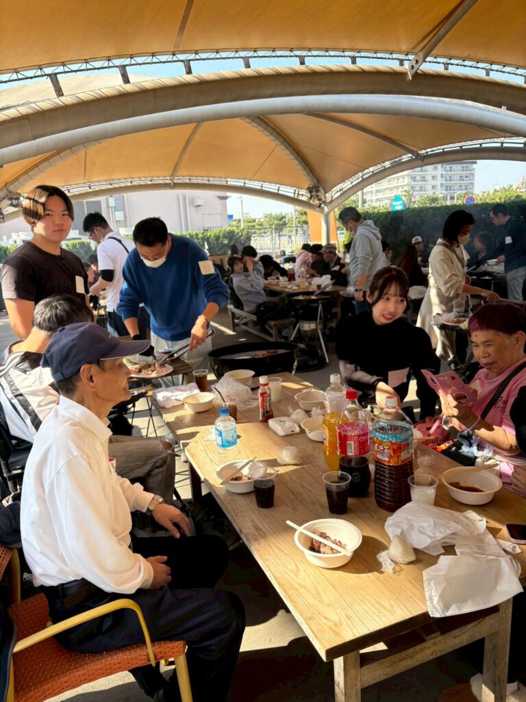 当日は天候にも恵まれ、開放的な景観のもと和やかな時間を過ごすことができました。各テーブル対抗で行った「私のことをもっと知ってくださいゲーム」では、ヒントを出し合いながら正解を目指す過程を通して、利用者と学生の間に自然なコミュニケーションが生まれ、チームワークの大切さを実感する機会となりました。2年次生も当日の運営に参加し、会場を盛り上げました。 ウィズアスには本学卒業生も複数在籍しており、サービスラーニング実習でも長年お世話になっています。本活動は、地域と大学をつなぐ継続的な学修機会として、来年度以降も発展させていく予定です。
